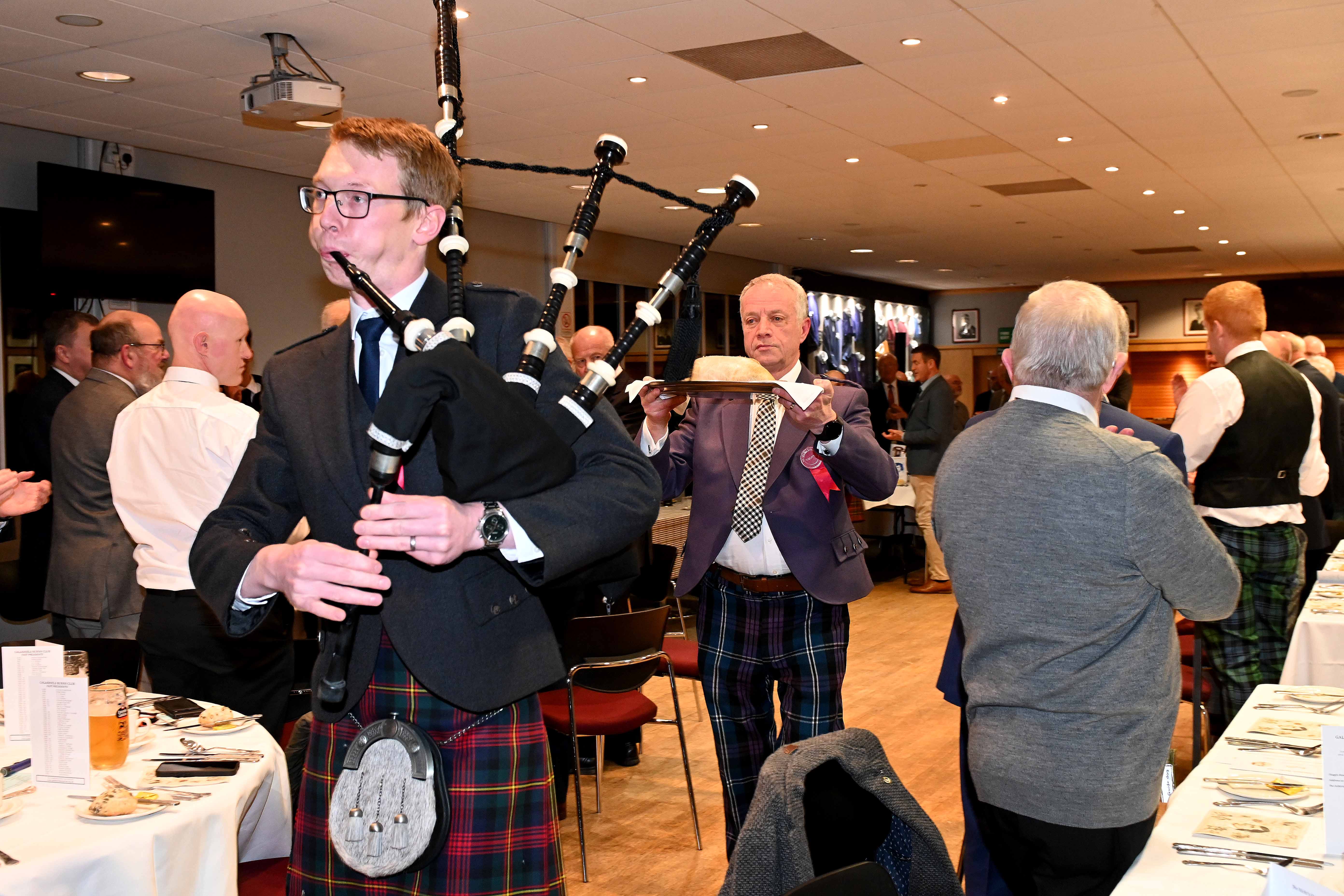 bringing the evening's fayre to the top table accompanied by piper Calum